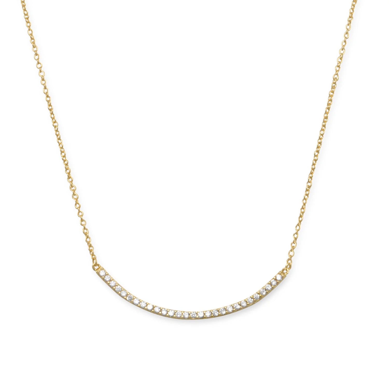 14 Karat Gold Plated Sterling Silver Curved CZ Bar Necklace, 18 Inch with 2 Inch Extension, Lobster Clasp