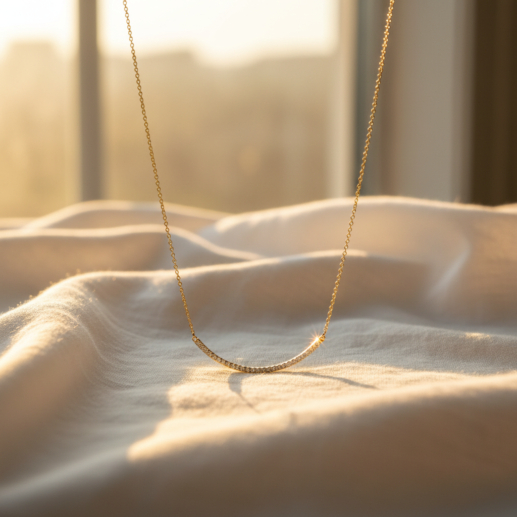 ELEGANT DESIGN: Features a sophisticated 36mm curved cubic zirconia bar pendant that adds a modern, minimalist touch