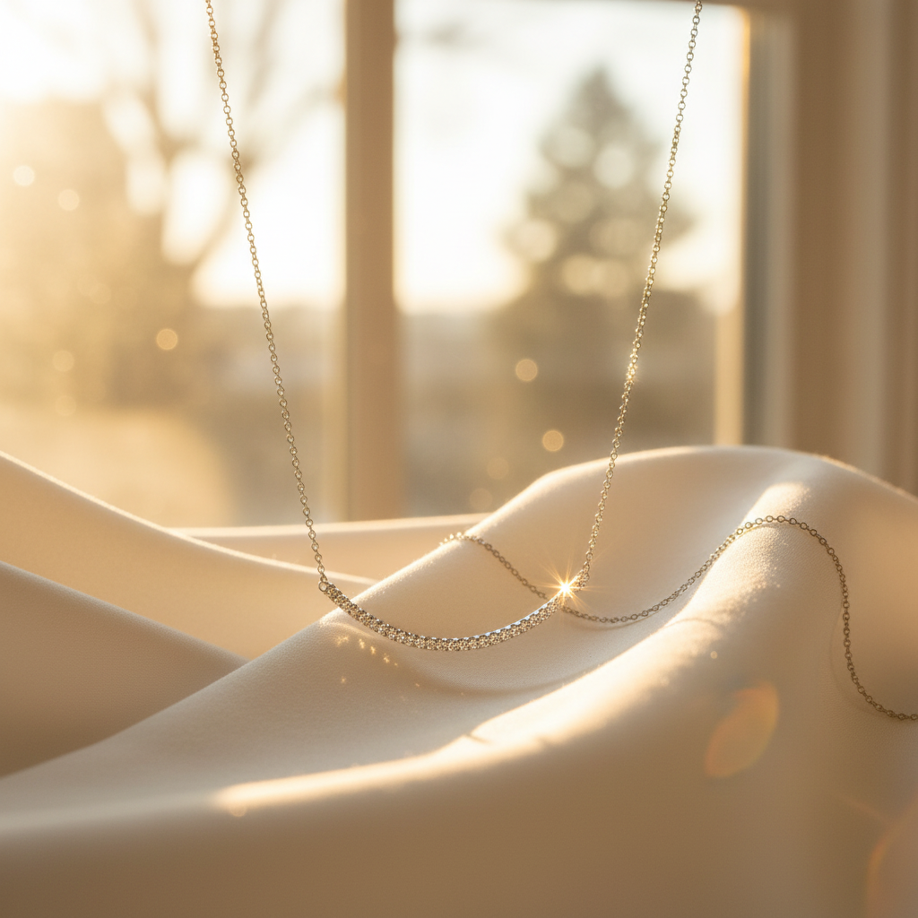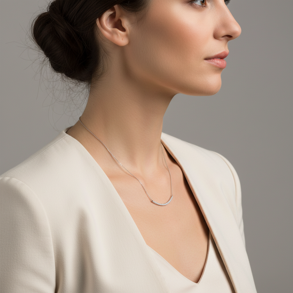 PENDANT DESIGN: Features an elegant 36mm curved cubic zirconia bar as the centerpiece