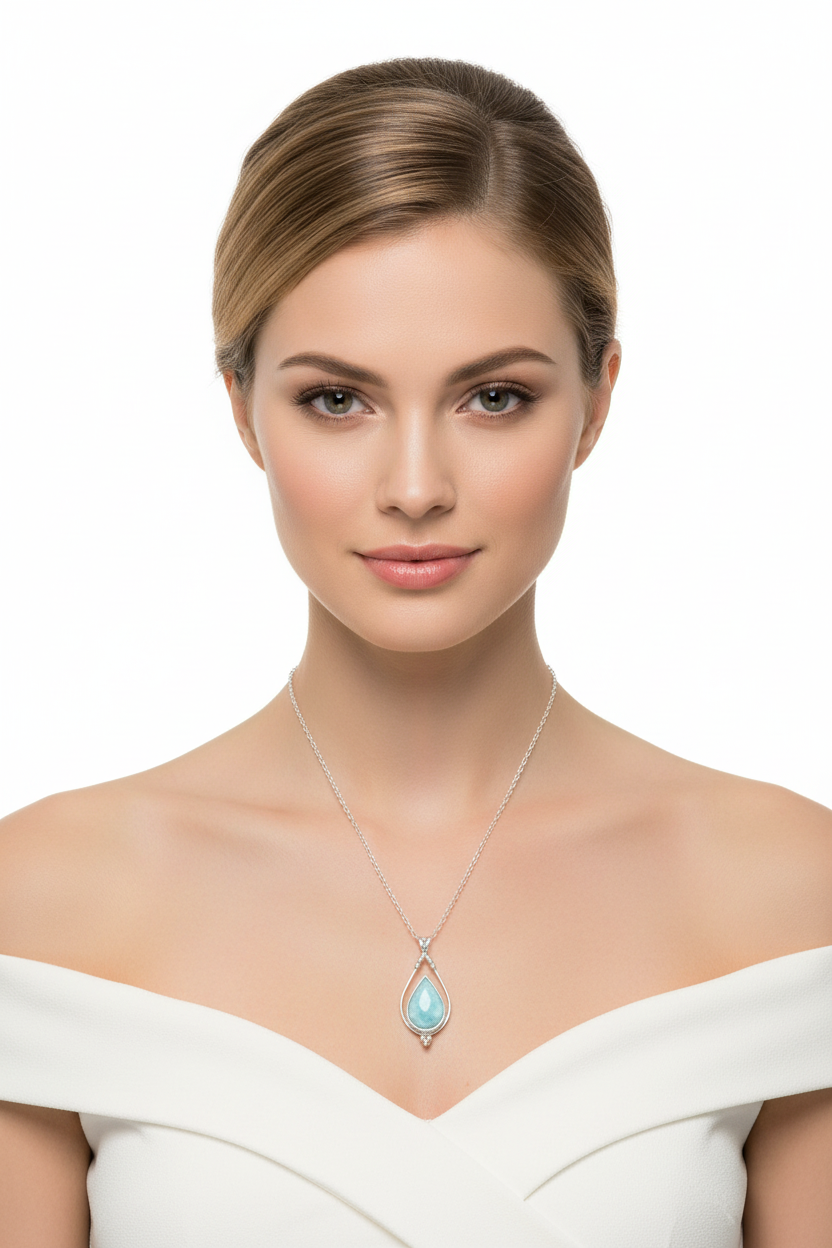 Elevate your jewelry collection with this exquisite 18-inch sterling silver necklace, featuring a sophisticated open pear-shaped pendant (13.5mm x 30.8mm) adorned with delicate dot accents. The centerpiece is a mesmerizing aqua Roman Glass pear setting (9.5mm x 13.3mm), adding ancient elegance to contemporary design. Secured with reliable lobster clasp, includes Certificate of Authenticity.