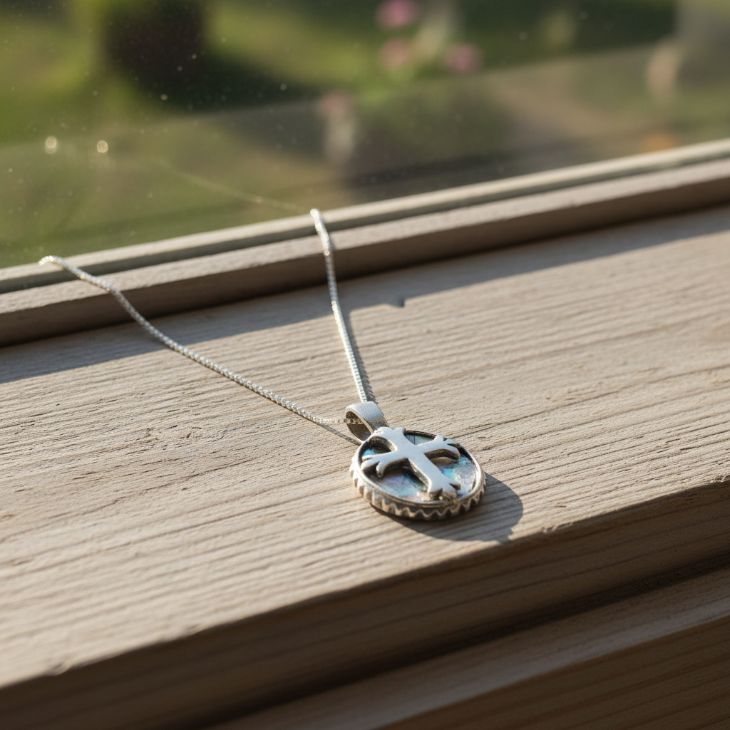 Roman Glass Cross Necklace - Sterling Silver Ancient Glass Pendant