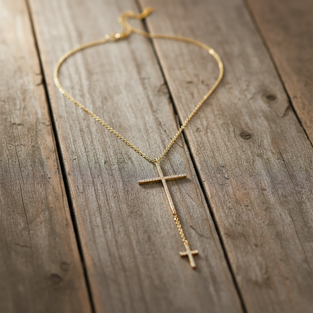 DOUBLE CROSS DESIGN: Features two elegant cubic zirconia crosses - a larger 23.5mm x 36.5mm cross and a smaller 8.8mm x 14mm cross