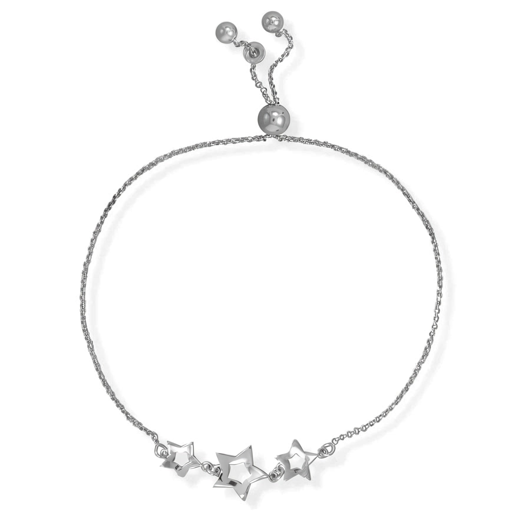 Starlight Slider - Italian Rhodium Plated Triple Star Bolo Bracelet | Adjustable to 9"