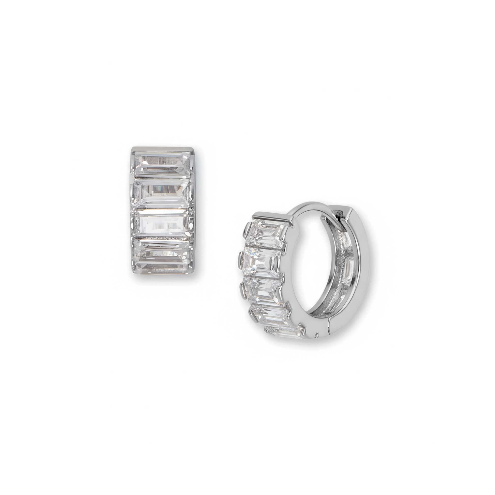 Baguette CZ Hoop Earrings - Sterling Silver Rhodium Plated Chunky Design